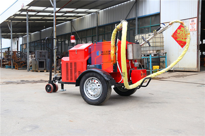 道路出現(xiàn)裂縫雖然是外界因素導(dǎo)致,但我們可以及時(shí)的處理,并防止進(jìn)一步的病害發(fā)生。治理的目的主要是防止雨水灌入縫內(nèi),將裂縫封住,通常叫做灌縫。翔工生產(chǎn)的XGF-100L瀝青灌縫機(jī)主要針對瀝青路面或水泥路面裂縫進(jìn)行灌縫。翔工瀝青灌縫機(jī)高溫專用瀝青泵,輸料壓力大,物料嵌入裂縫深,施工質(zhì)量有保證,物料流量無級調(diào)整,適合各種寬度及形狀的裂縫修補(bǔ)作業(yè)。