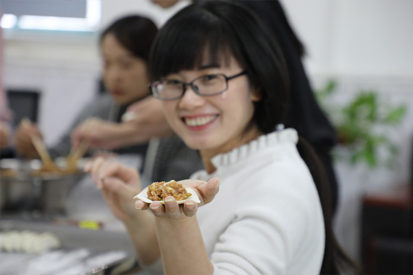 冬至宴熱鬧有序的進行著,大家分工明確,以飽滿的熱情投入這場活動中,先開始行動的就是我們的采買小隊,精心挑選食材,交于我們的帥哥-調(diào)餡擔當。