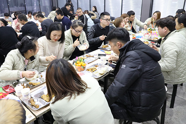 一頓操作之后已經(jīng)香氣撲鼻,我們的包餃子大隊開始行動了!大家熱情高漲,踴躍參與,整個包餃子過程,歡聲笑語不斷,大家齊心協(xié)力、精誠合作,一排排各具個性的餃子很快就擺滿了盤子(這些各具個性的餃子中有驚喜等著大家呦,詳情活動揭曉)。接下來餃子下鍋,靜等冬至宴會開始!