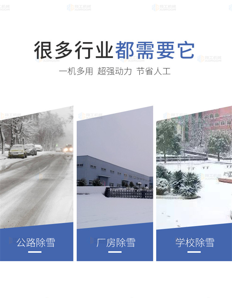 小型掃雪車由中型卡車或重型卡車、四缸汽車發(fā)動(dòng)機(jī)、吸雪管、