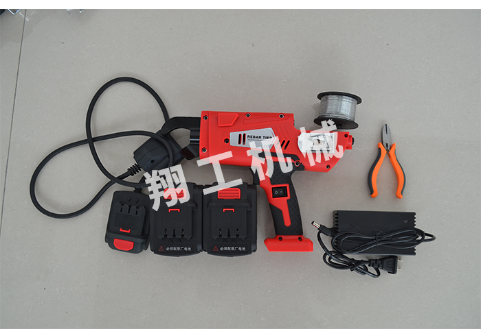 整機(jī)清單:全自動鋼筋捆扎機(jī)一臺,鋰電池兩塊,充電器一只,鐵絲鉗一把,絲盤一個,使用說明書一本。