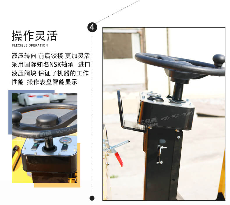 ·發(fā)動機(jī)電啟動,機(jī)器采用液壓振動,操作更加輕松方便;