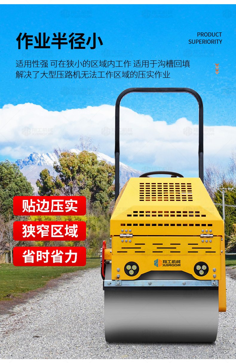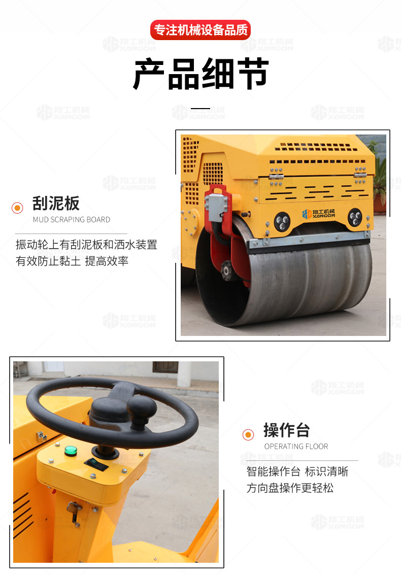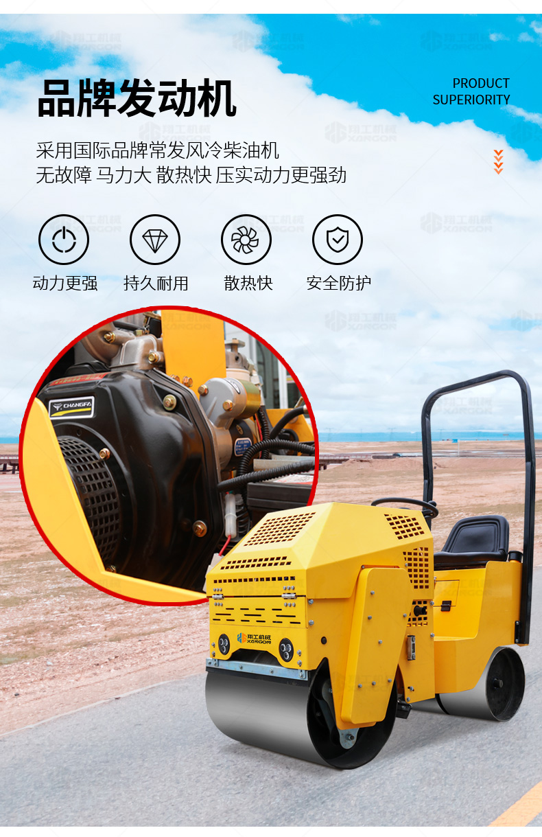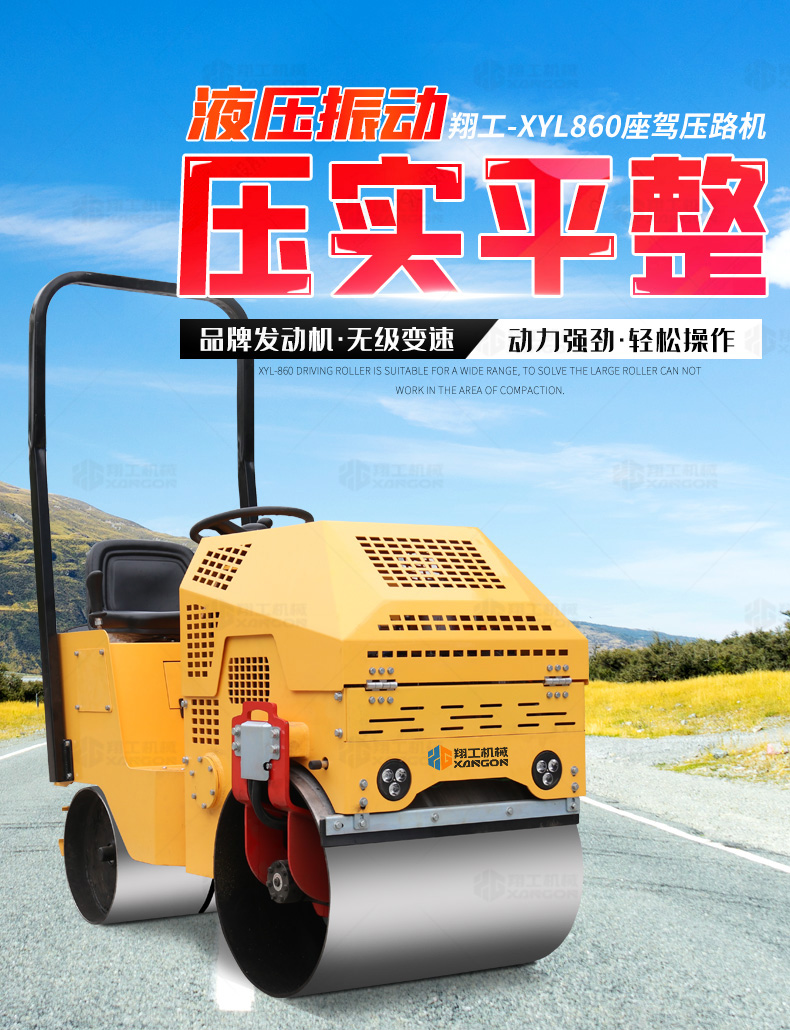XYL-860座駕壓路機(jī)適用于各種溝槽沙土回填壓實(shí)、高層建筑地下室土方壓實(shí)、小區(qū)道路基礎(chǔ)壓實(shí)、各種草坪壓實(shí)、修補(bǔ)及各種小型工程的使用,解決了大型壓路機(jī)無法工作區(qū)域的壓實(shí)作業(yè)。