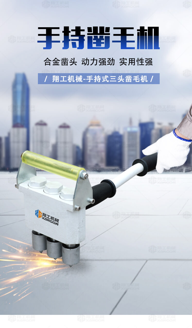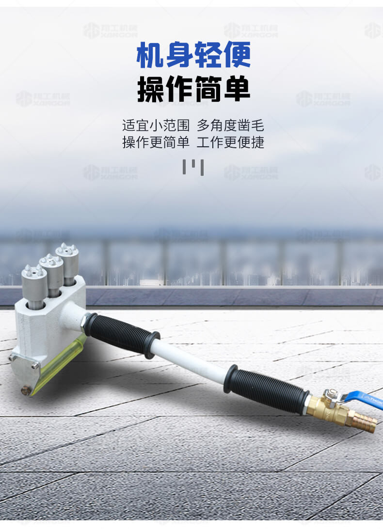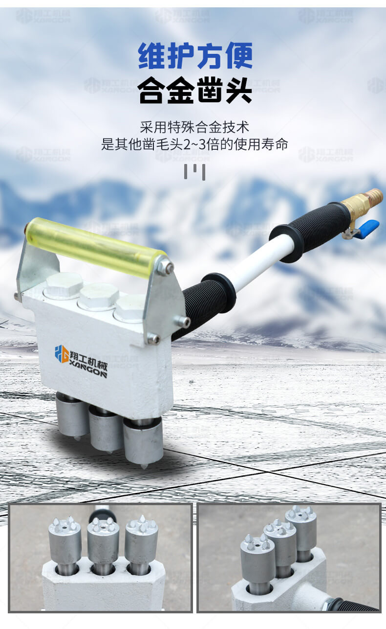 鑿毛機機型小,機身輕便,特別適宜小范圍、多角度鑿毛。采用特殊合金技術(shù),是其它鑿毛頭2-3倍的使用壽命。