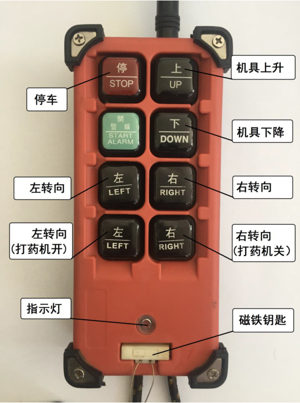 注:遙控器在使用過程中,電池的電量會(huì)影響實(shí)際控制距離,提醒用戶注意檢查,及時(shí)更換電池(2節(jié)五號(hào)電池),長(zhǎng)時(shí)間不用應(yīng)將磁鐵鑰匙取下,避免跑電。