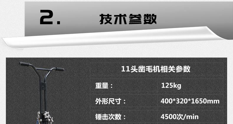 1、11個(gè)鑿毛頭的沖擊功率大,可達(dá)2200blow/分鐘,危害小;