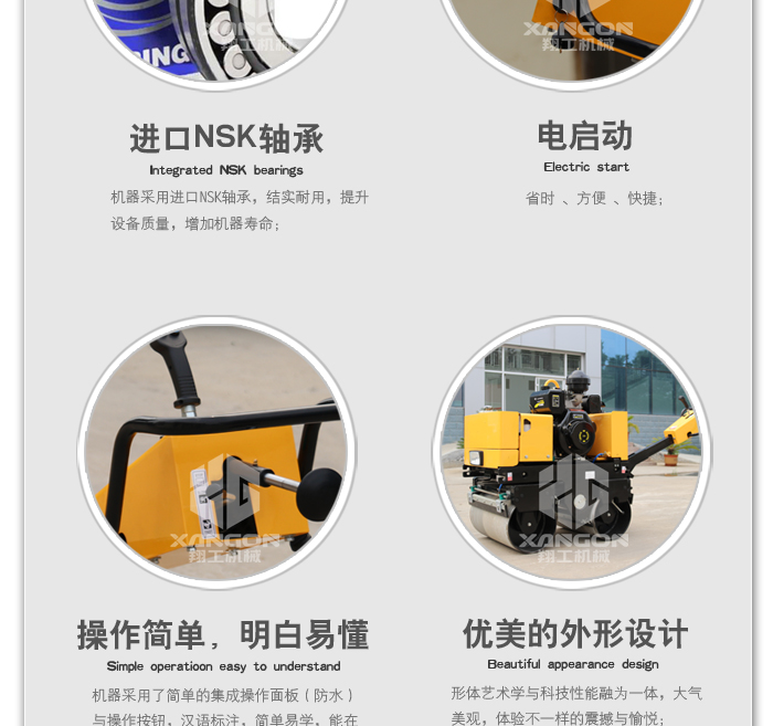 4.發(fā)動機電啟動,機器振動電磁離合控制,操作更加輕松方便;