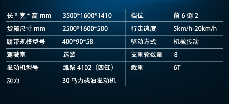 履帶運輸車是專門提供復(fù)雜路況運輸工作的機(jī)器,適用于普通運輸車輛無法或者不適合通行的地方。履帶運輸車以履帶代替了輪式行走,降低了對地面的損傷,同時履帶行走裝置降低了機(jī)器與地面的單位面積壓力,適用于山林、田地、沼澤、沙地、草地、雪地以及土質(zhì)松軟或氣候條件不太發(fā)的接近角和離地角。