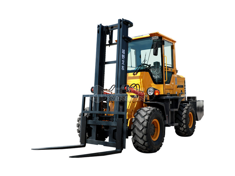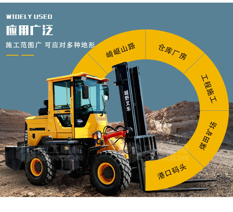 5.越野叉車發(fā)動(dòng)機(jī)功率大,采用全輪驅(qū)動(dòng)和越野輪胎。