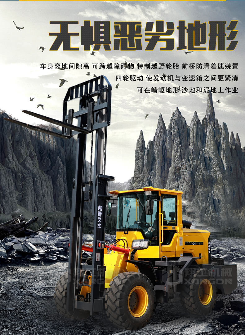 越野叉車適用于道路修筑、城市建設、環(huán)境衛(wèi)生、石料場、中小型土木工程、車站、碼頭、貨場、倉庫等地方,主要用來轉運石料、設備、貨物、城市垃圾箱以及集裝物料等。