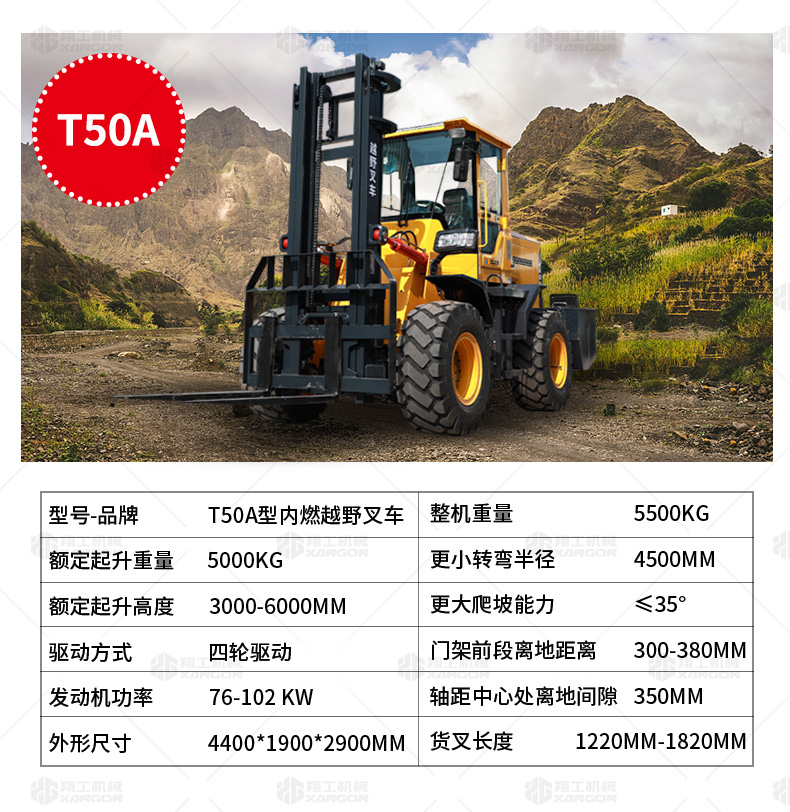 3.普通叉車只能在平整的路面上作業(yè),而越野叉車既可以在普通路面上作業(yè),還可以在山路泥路崎嶇道路作業(yè),輪胎抓地力強(qiáng),不打滑。