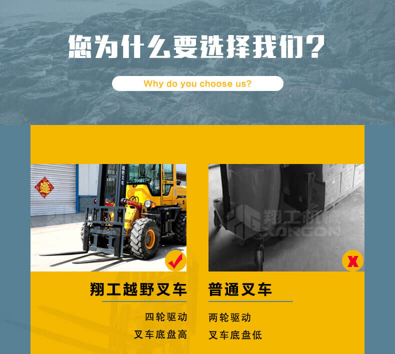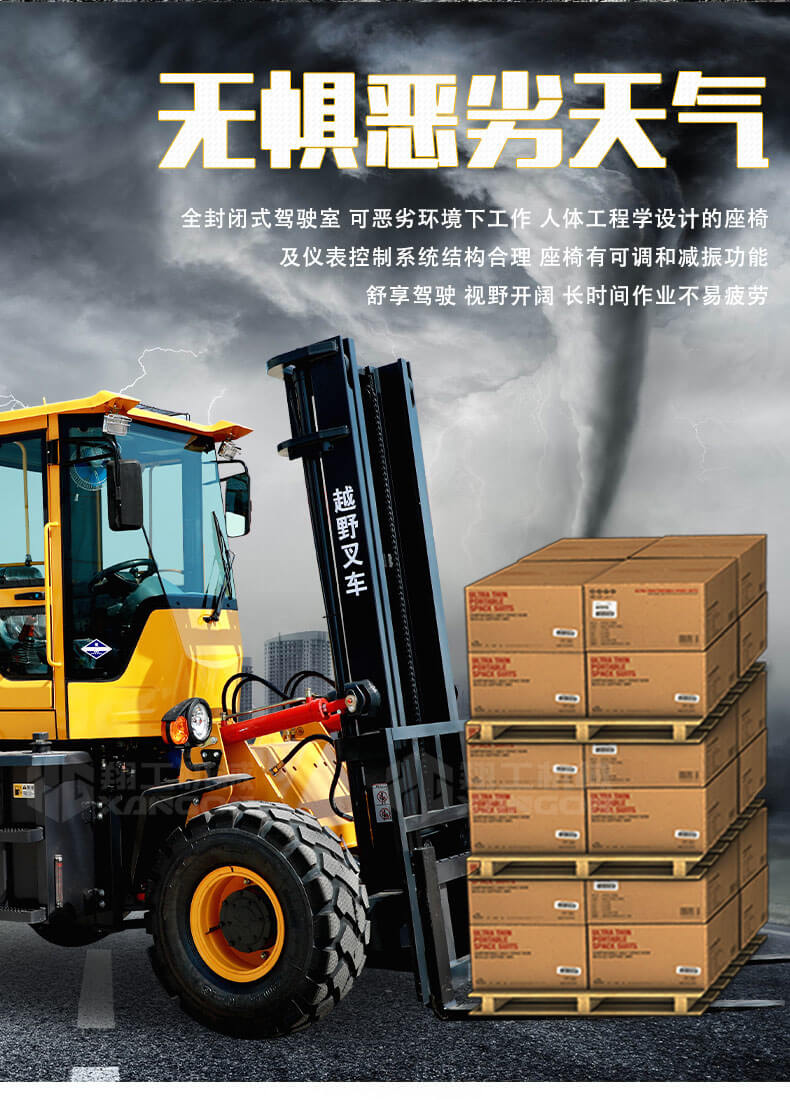 1.普通叉車是兩輪驅動的,而越野叉車是四輪驅動的。