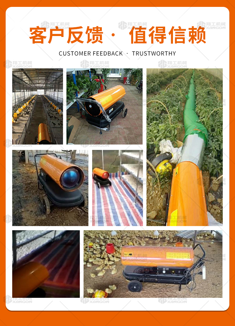 燃油暖風機可對禽畜取暖,育雛取暖,花卉養(yǎng)殖,大棚蔬菜瓜 果,商場,車間,展會進行取暖。