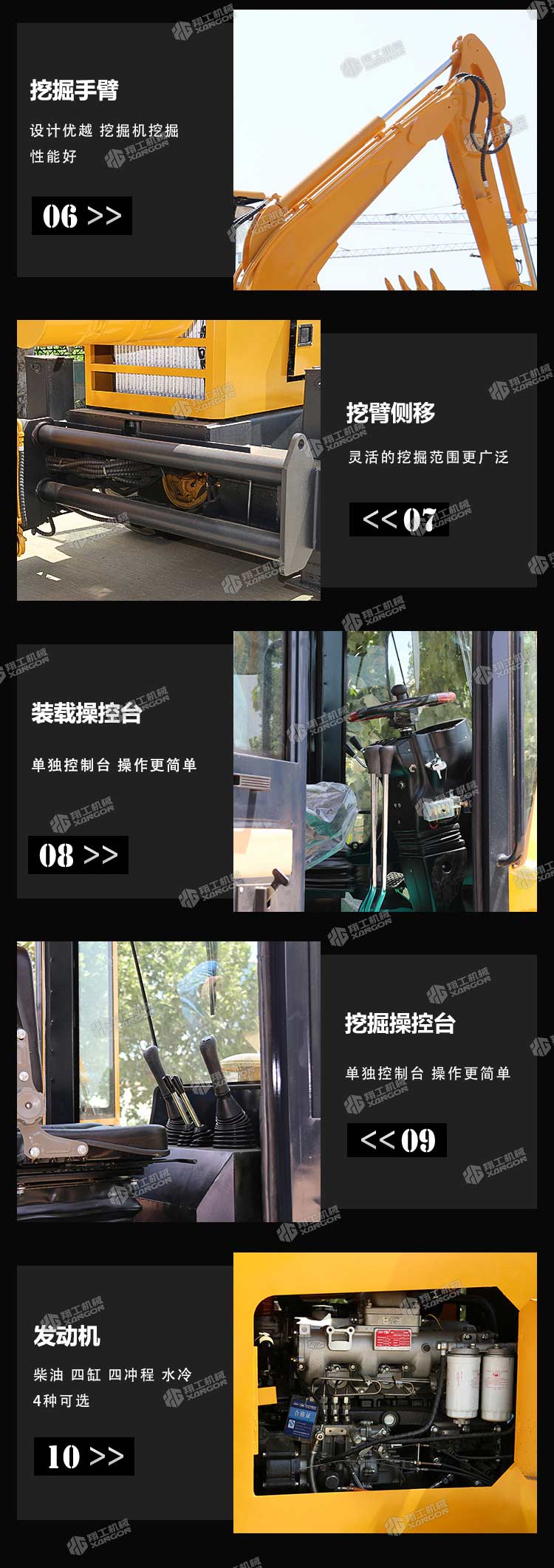 挖掘裝載一體機俗稱“兩頭忙”。因為它具有獨特的構造,前端是裝載裝置,后端為挖掘裝置。在工地內,您只需要轉動一下座椅,即可完成從裝載機到挖掘機操作手角色的轉變。“兩頭忙”屬于小型多功能工程機械的一種,一般在大工程完成后的小工程中使用。它可配多種工作裝置及輔具,進行挖掘、鏟裝、路面破碎、平整場地、開挖溝渠、鋪設管道等多種作業(yè)。