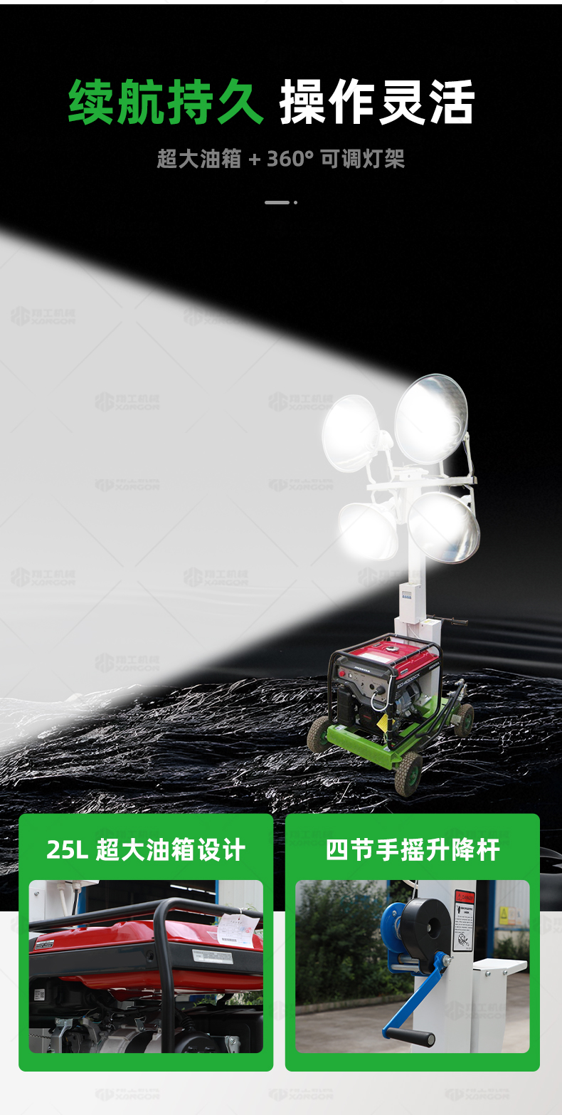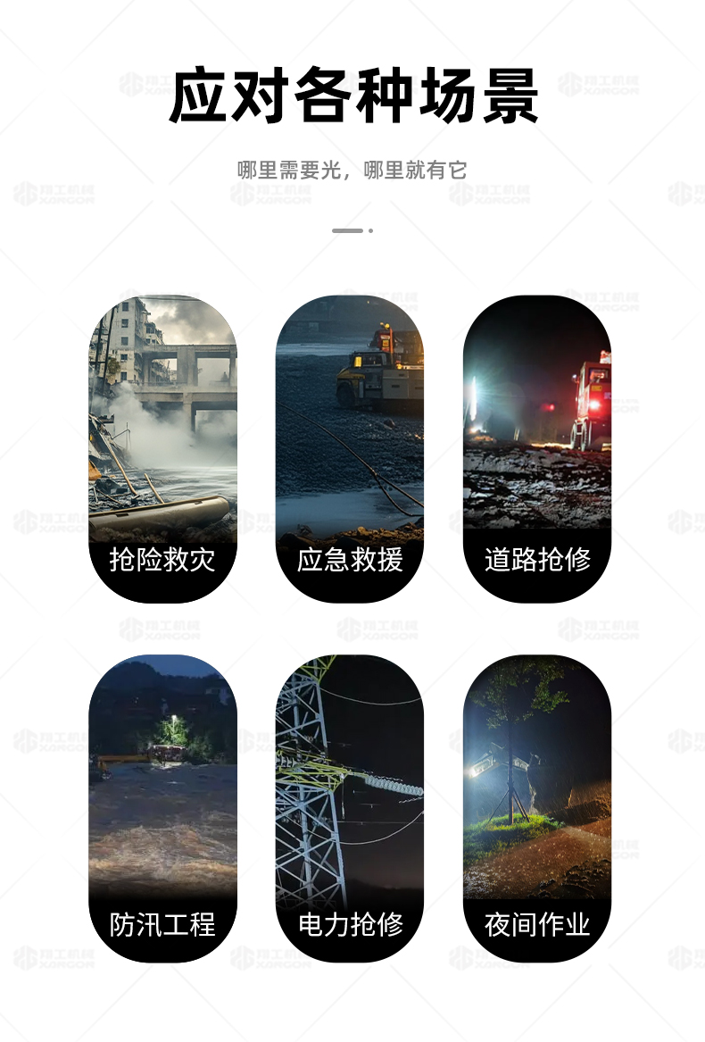 工程照明車XZM-1000B用于體育場館、機場、碼頭等大型公共場所,公路、鐵路、電力等緊急搶險現(xiàn)場,露天采礦現(xiàn)場,以及防洪防汛、搶險救災(zāi)現(xiàn)場等其它需要緊急備用光源、電源的場合