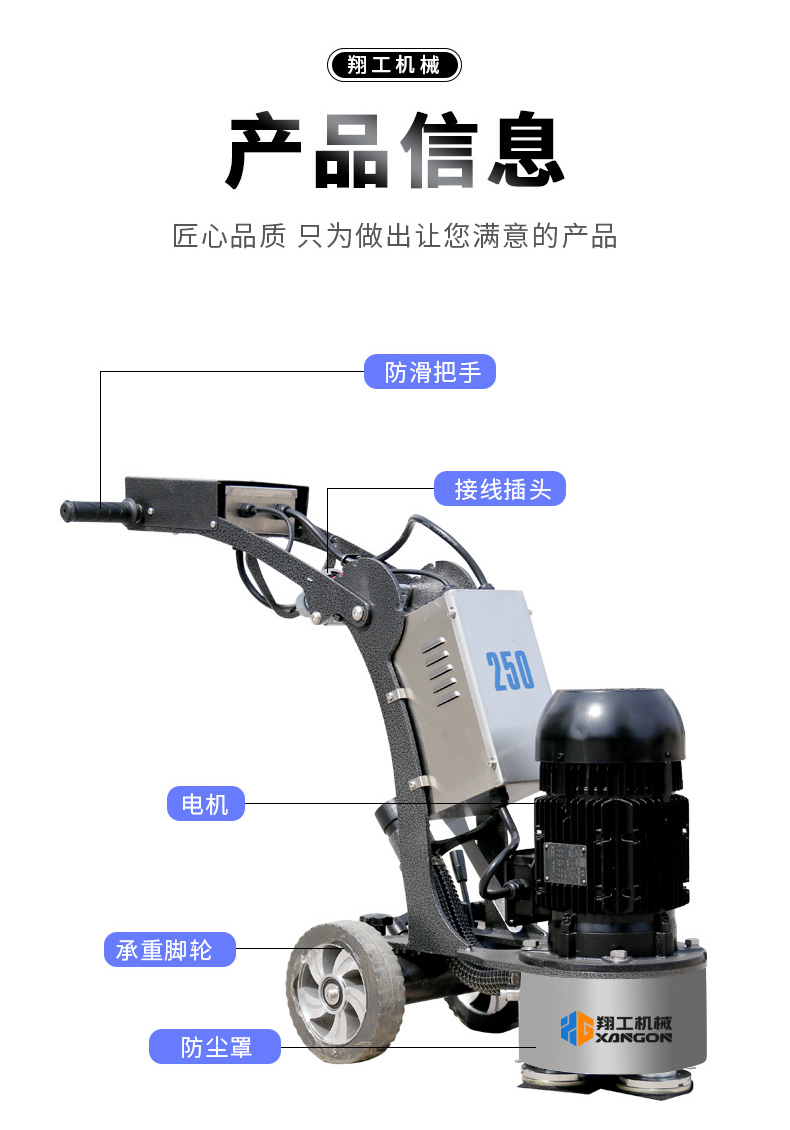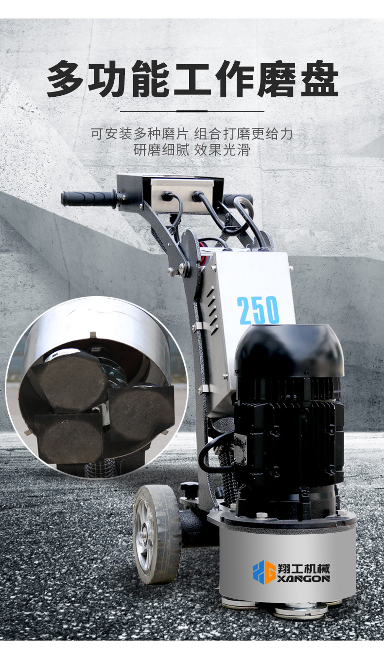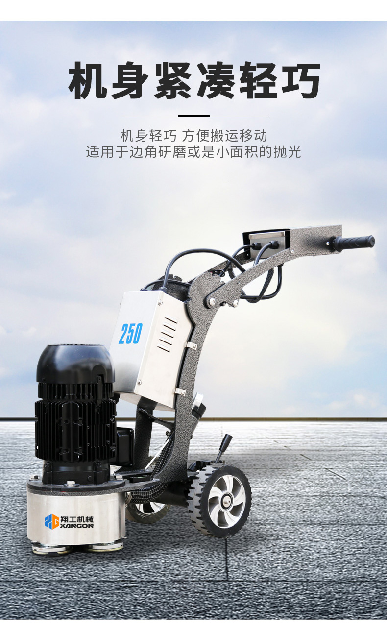 250拋光修邊機(jī)也叫混凝土地坪邊角機(jī),適合邊角、小面積打磨,機(jī)動(dòng)靈活,使用方便,下面帶大家來了解一下這款產(chǎn)品詳情。