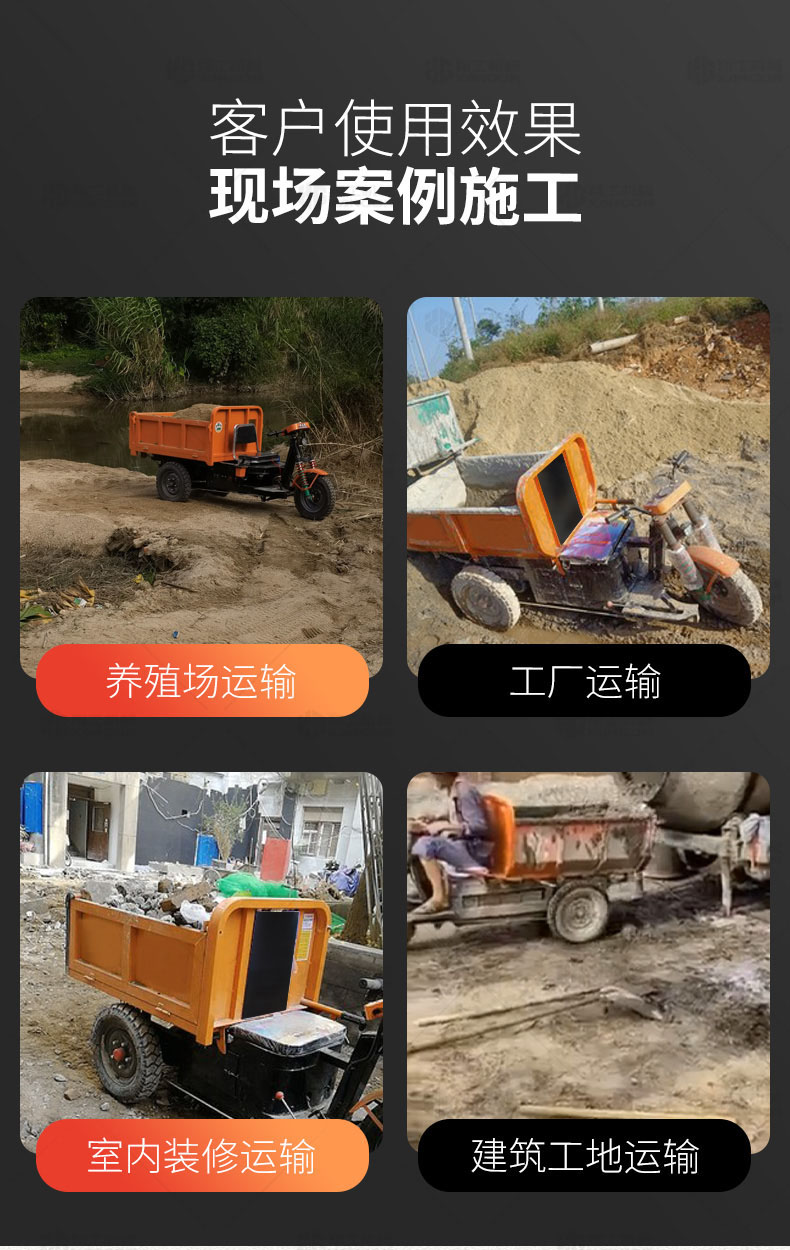 此款車適用于建筑工地、室內(nèi)裝修、養(yǎng)殖場(chǎng)、工廠等場(chǎng)所,運(yùn)輸沙子、水泥、土方、混凝土、建筑垃圾生活垃圾、養(yǎng)殖場(chǎng)動(dòng)物糞便、飼料等,體積小操作簡(jiǎn)單靈活,可原地360度轉(zhuǎn)圈,可進(jìn)入樓層、樓道、電梯、吊籃等各種狹小空間作業(yè),是您必不可少的裝卸助手。