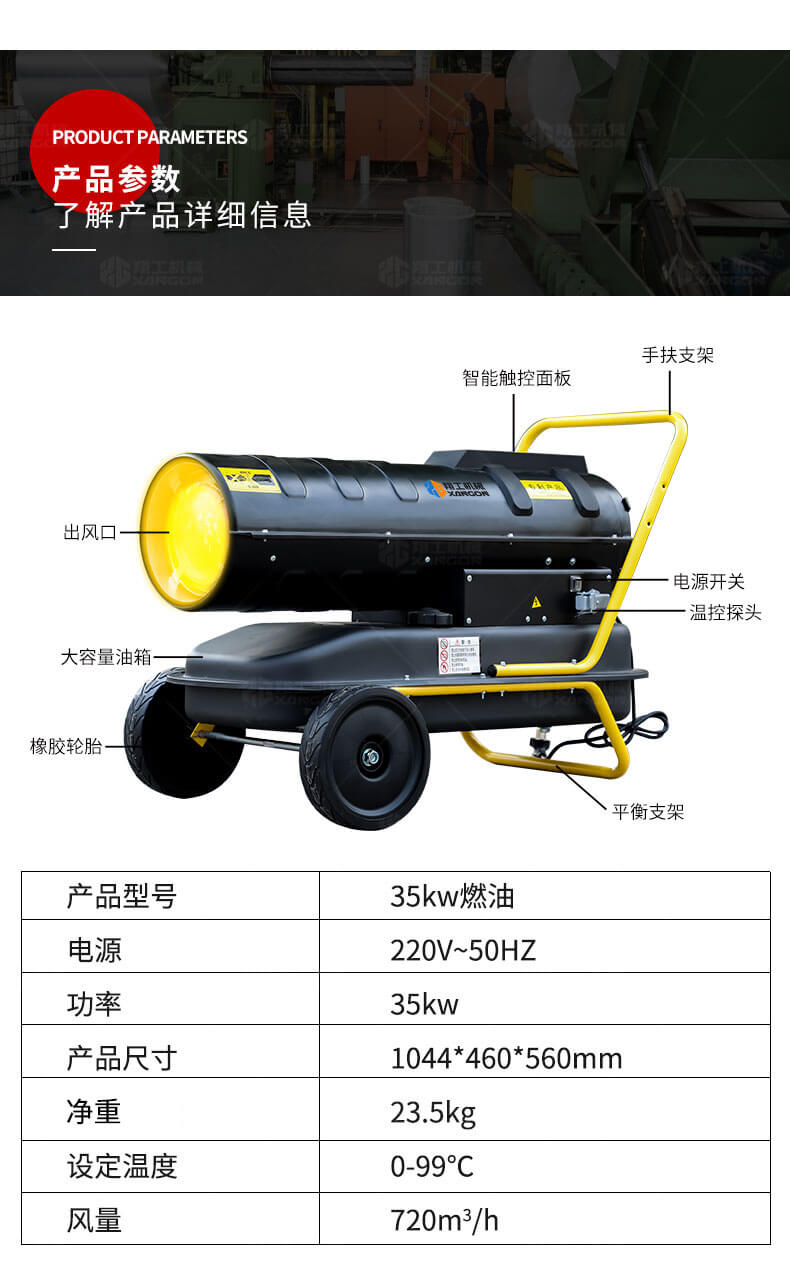 35KW燃油暖風(fēng)機(jī)適合在工廠車間,物資倉(cāng)庫(kù),防潮烘干,局部采暖 建筑工地,道路橋梁,水泥養(yǎng)護(hù),野外采暖 石油鉆井,煤炭礦區(qū),除冰防凍,設(shè)備保溫 鐵路機(jī)場(chǎng),游艇船舶,油漆干燥等等。