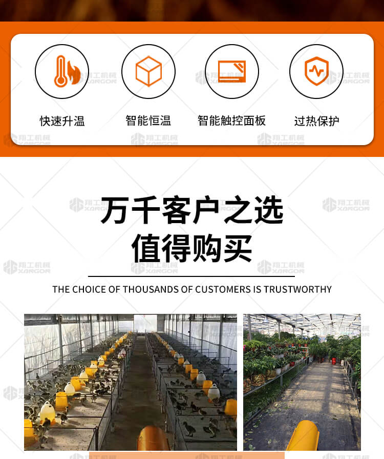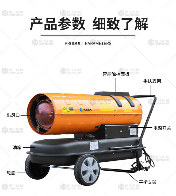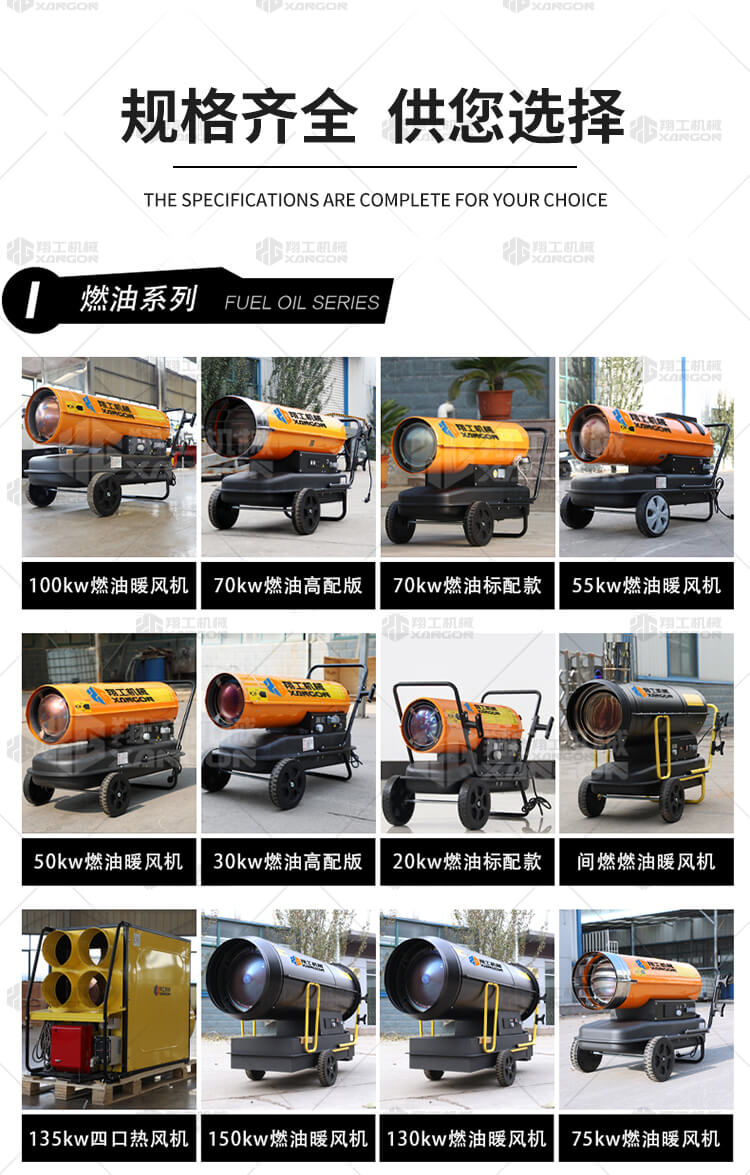 燃油暖風(fēng)機(jī)可對(duì)禽畜取暖,育雛取暖,花卉養(yǎng)殖,大棚蔬菜瓜 果,商場(chǎng),車間,展會(huì)進(jìn)行取暖。