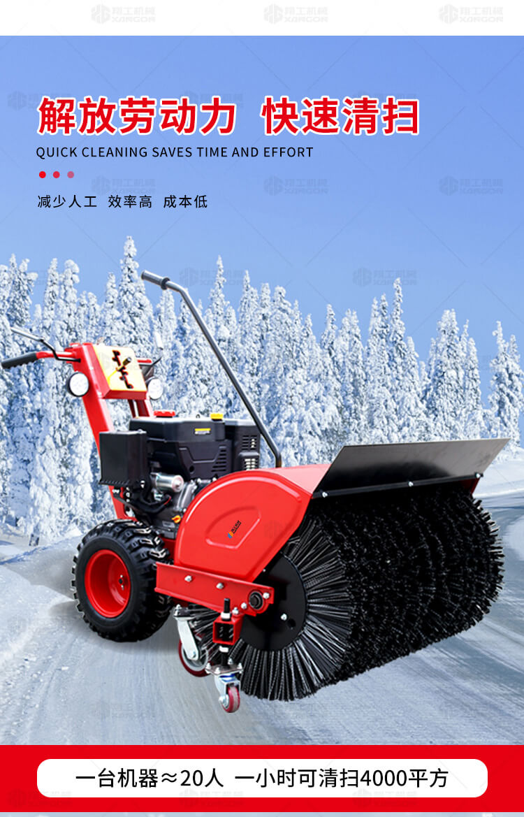 自行走多功能掃雪機(jī)是一款用于道路、廣場等大區(qū)域面積積雪清掃的滾刷式掃雪機(jī)。該滾刷具有極高的耐磨度,即使針對極度不平道路積雪的清掃也擁有高效的潔凈效果。該機(jī)小巧靈活,價格低、功能多,節(jié)省勞動力,一臺機(jī)器頂10個-20個人工。是機(jī)關(guān)、單位、學(xué)校、停車場、廣場、物業(yè)小區(qū)、花園、非機(jī)動車道等廣泛選用的冬季清雪機(jī)械。一機(jī)多用型,經(jīng)濟(jì)實用!