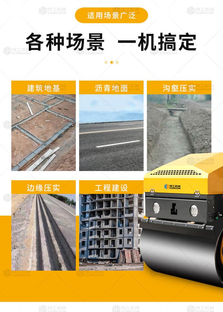 主要用于溝渠基礎(chǔ),道路,體育場地的壓實整平,也可用于壓實瀝青表面的作業(yè)。