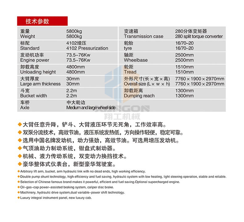 主要用于鏟裝土壤、砂石、石灰、煤炭等散狀物料,也可對礦石、硬土等作輕度鏟挖作業(yè)。換裝不同的輔助工作裝置還可進行推土、起重和其他物料如木材的裝卸作業(yè)。在道路、特別是在高等級公路施工中,裝載機用于路基工程的填挖、瀝青混合料和水泥混凝土料場的集料與裝料等作業(yè)。