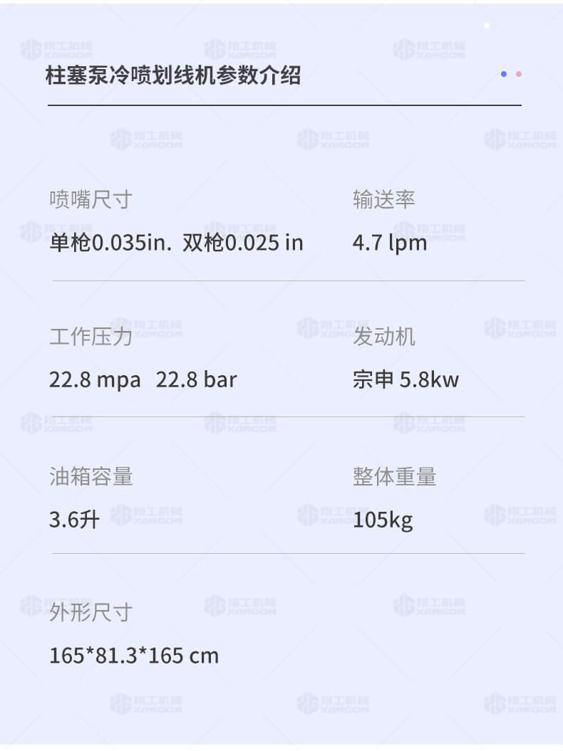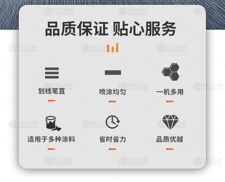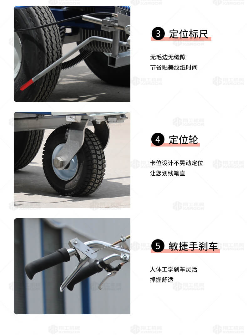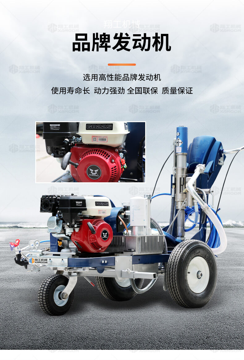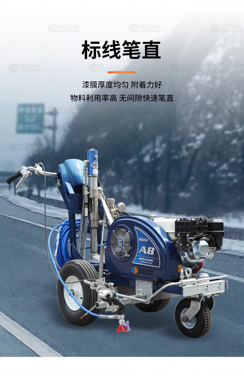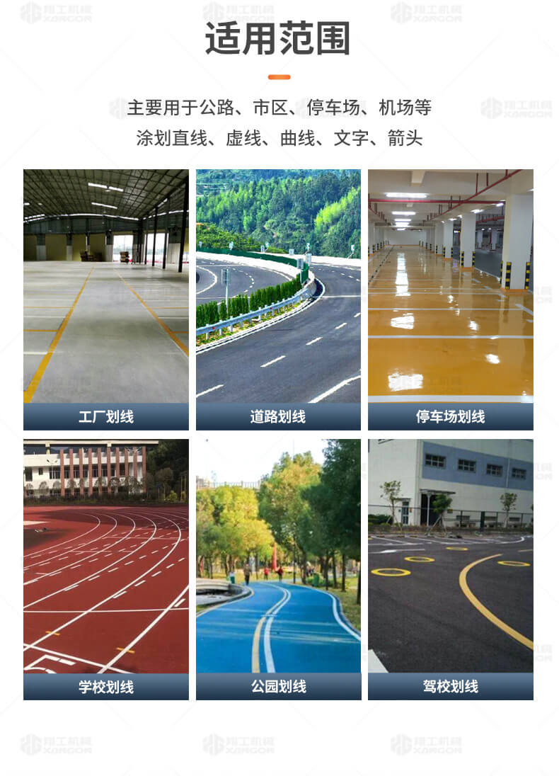 主要用于公路、市區(qū)、停車場、機場等涂劃直線、虛線、曲線、文字、箭頭等。具有劃線效果好、速度快、效率高、適用范圍廣、使用方便等優(yōu)點。