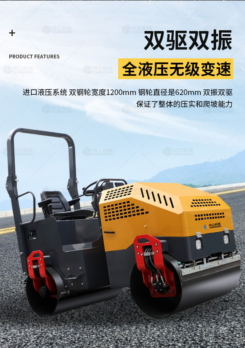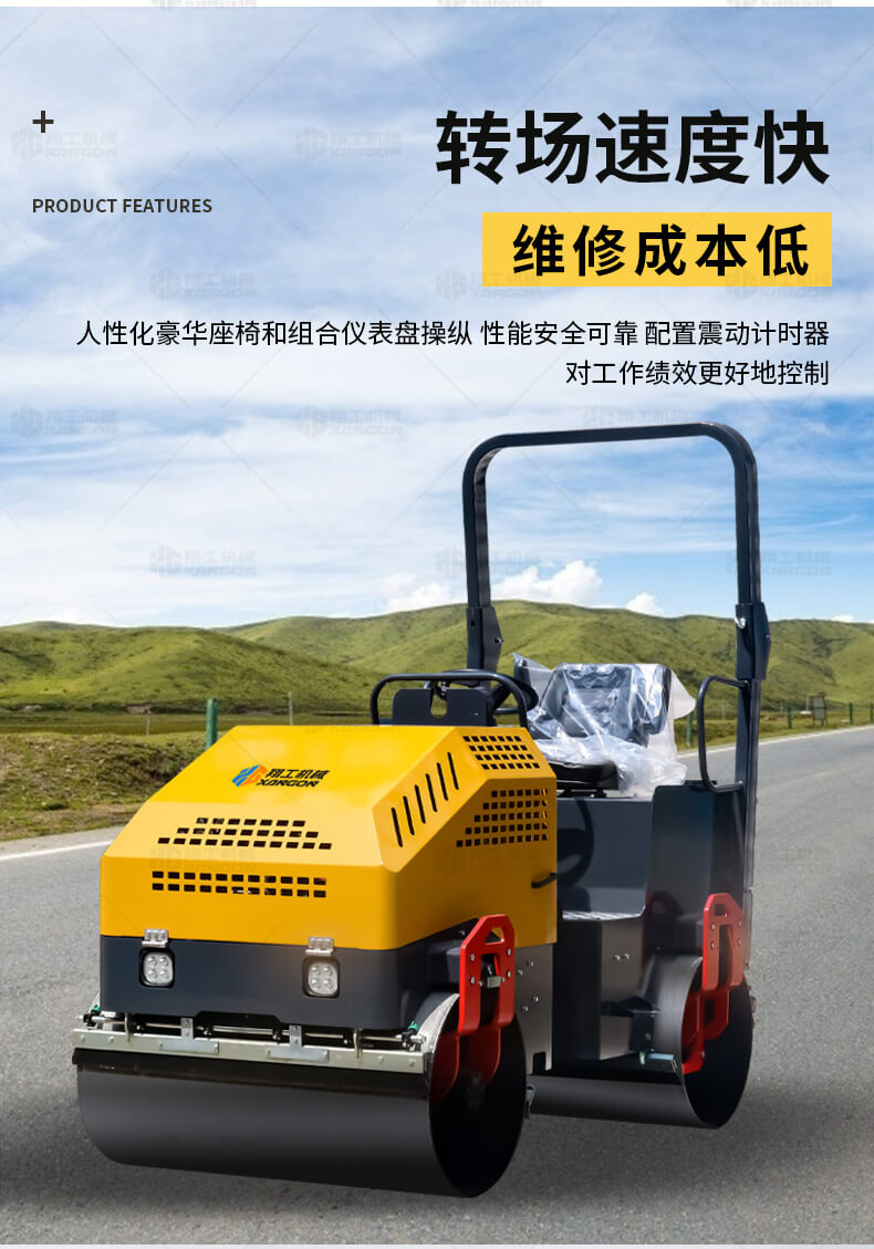 小型壓路機(jī)主要用于溝渠基礎(chǔ)、道路、體育場地的壓實(shí)整平,瀝青表面的作業(yè),礫石、沙土等工程基礎(chǔ)壓實(shí)修復(fù),學(xué)校操場跑道和碾壓草坪等。