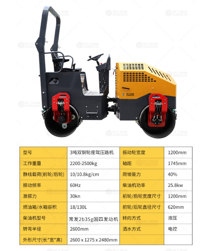 XYL-1100 3噸雙鋼輪座駕壓路機(jī)