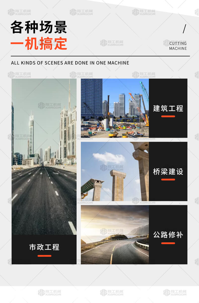 用于公路、市政、建筑、煤氣、通信部門修補公路或開挖溝槽時進行路面切割。相對于電動或柴油動力的路面切割機,操作輕巧省力,運輸方便,工作效率高。