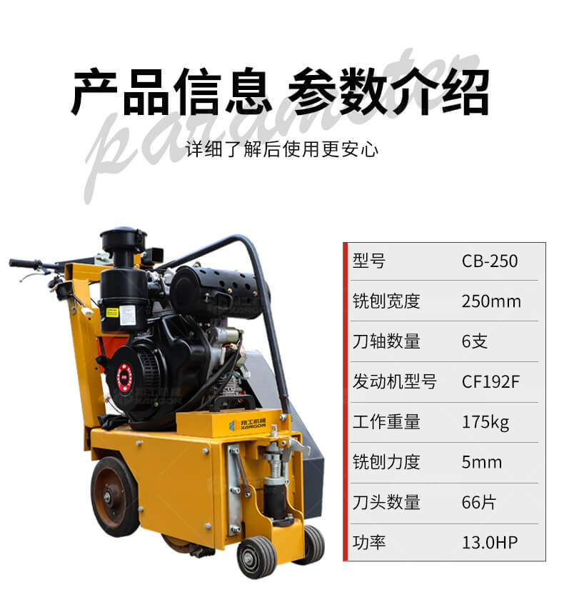 用于橋面鋪設(shè)瀝青或車間舊的混凝土地面重新攤鋪混凝土之前,清除水泥浮漿以及鏟平拉毛,也用于清除建筑施工中遺留的堅(jiān)硬灰渣。