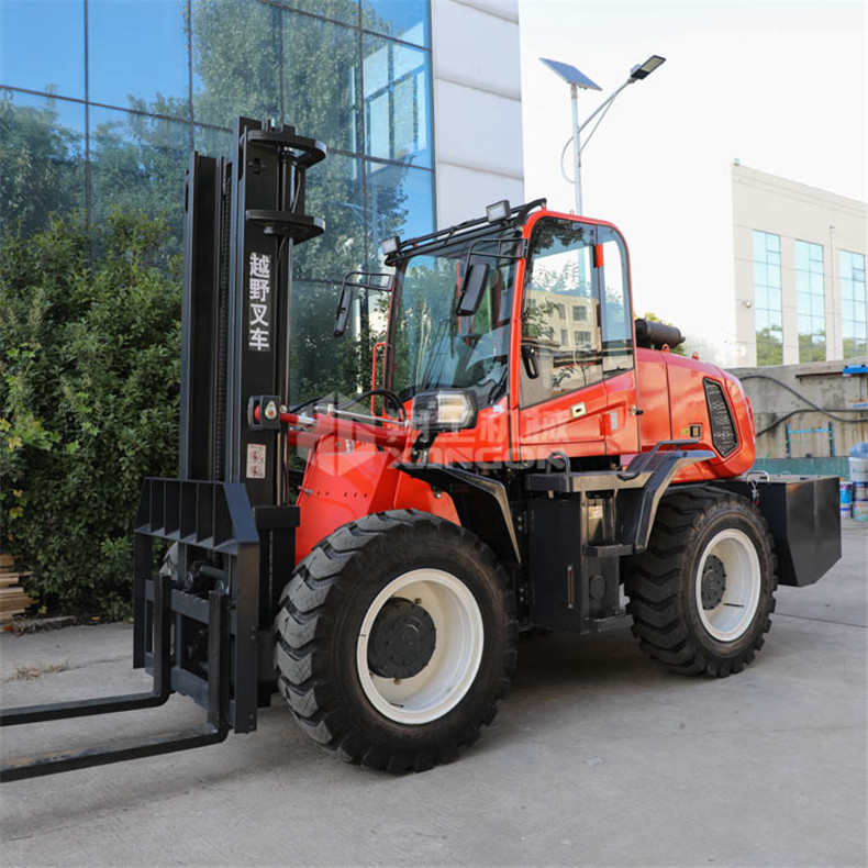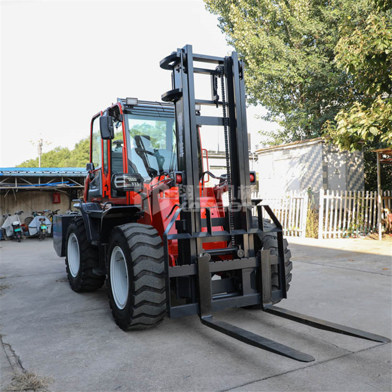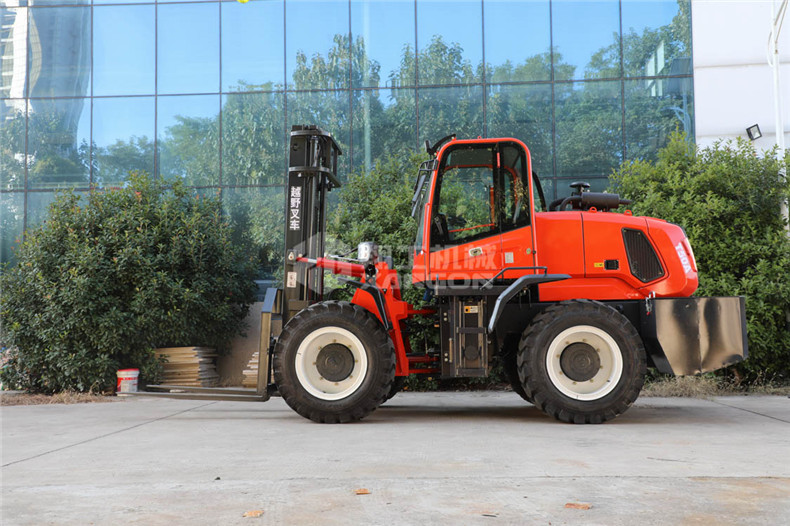 越野叉車可以在坡地和不平地面上進(jìn)行貨物裝、卸、堆垛及搬運(yùn)作業(yè),具有良好的機(jī)動(dòng)性、越野性可靠性。其功能多樣,可搭配側(cè)移器、調(diào)距叉、旋轉(zhuǎn)器、軟包夾、推出器、側(cè)翻叉、側(cè)翻斗、起重臂等工具完成不同的工作。