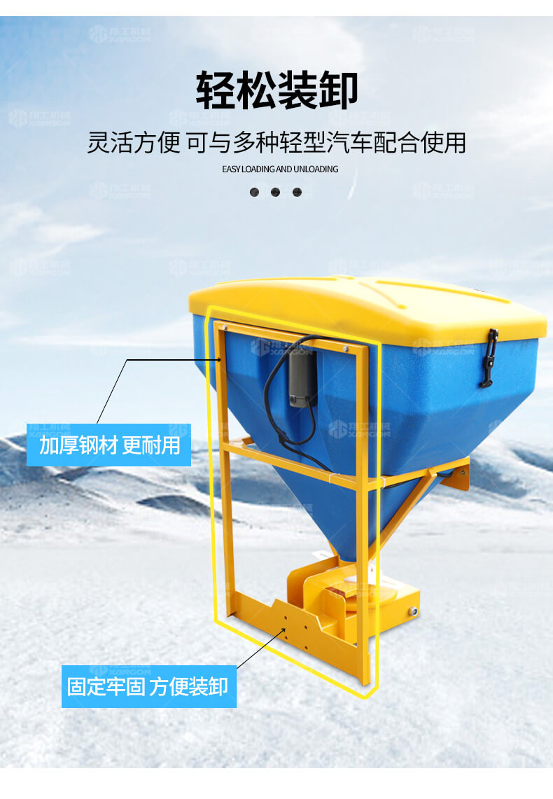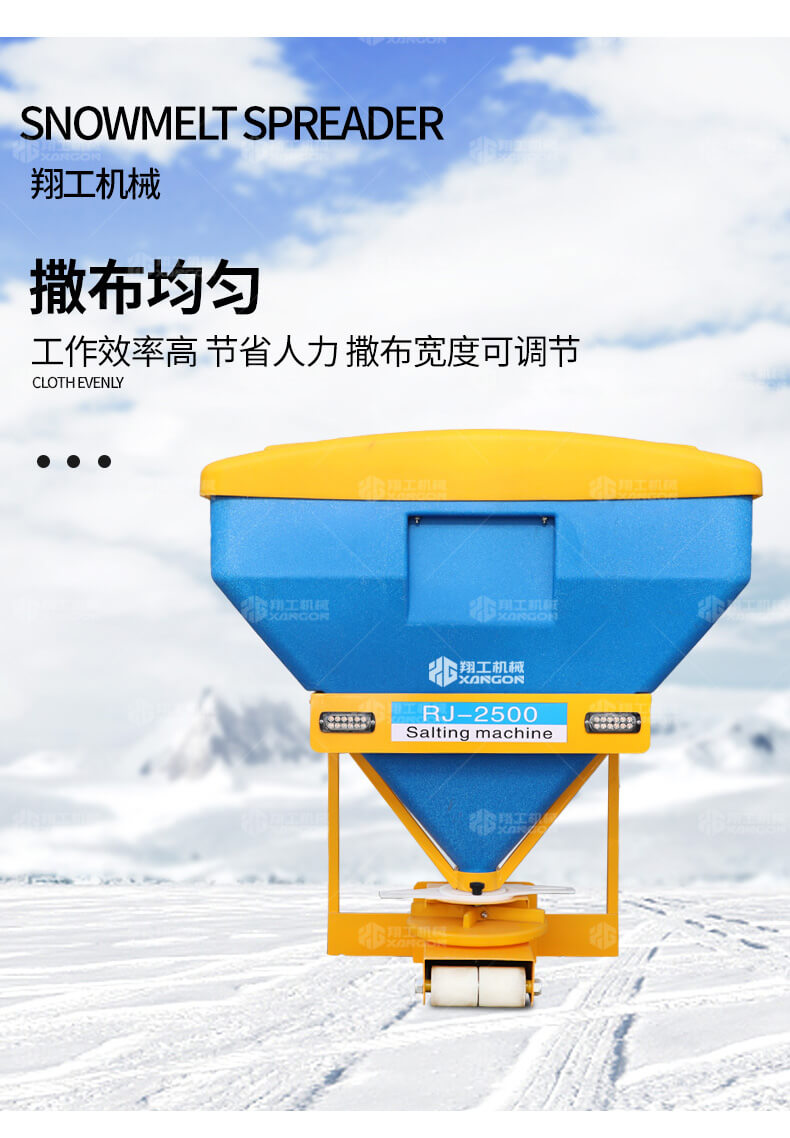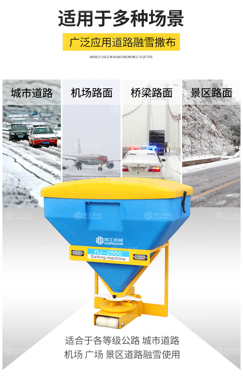 本產品用于道路、小區(qū)、廣場等地面積雪的融雪布撒,用以加速地面積雪融化,消除雪停自然融雪又結冰的風險。