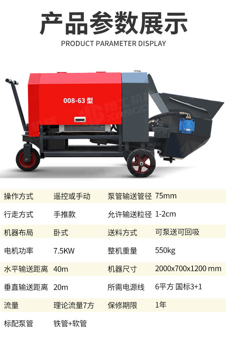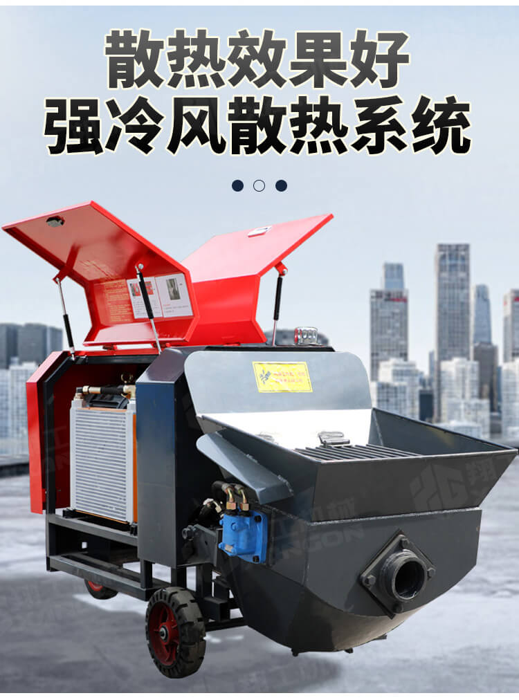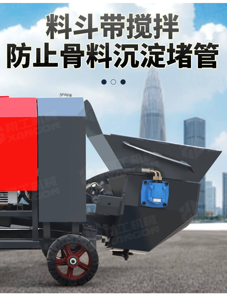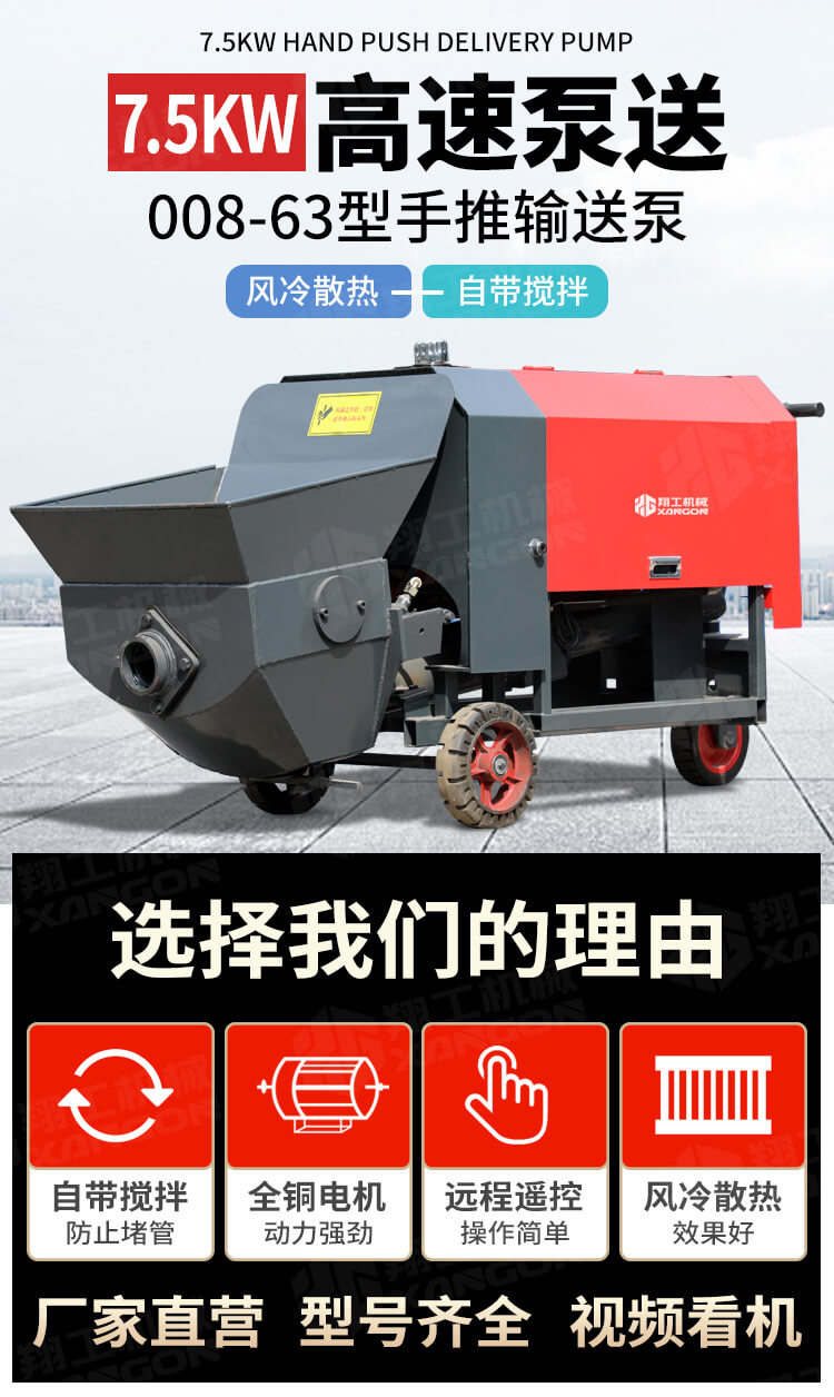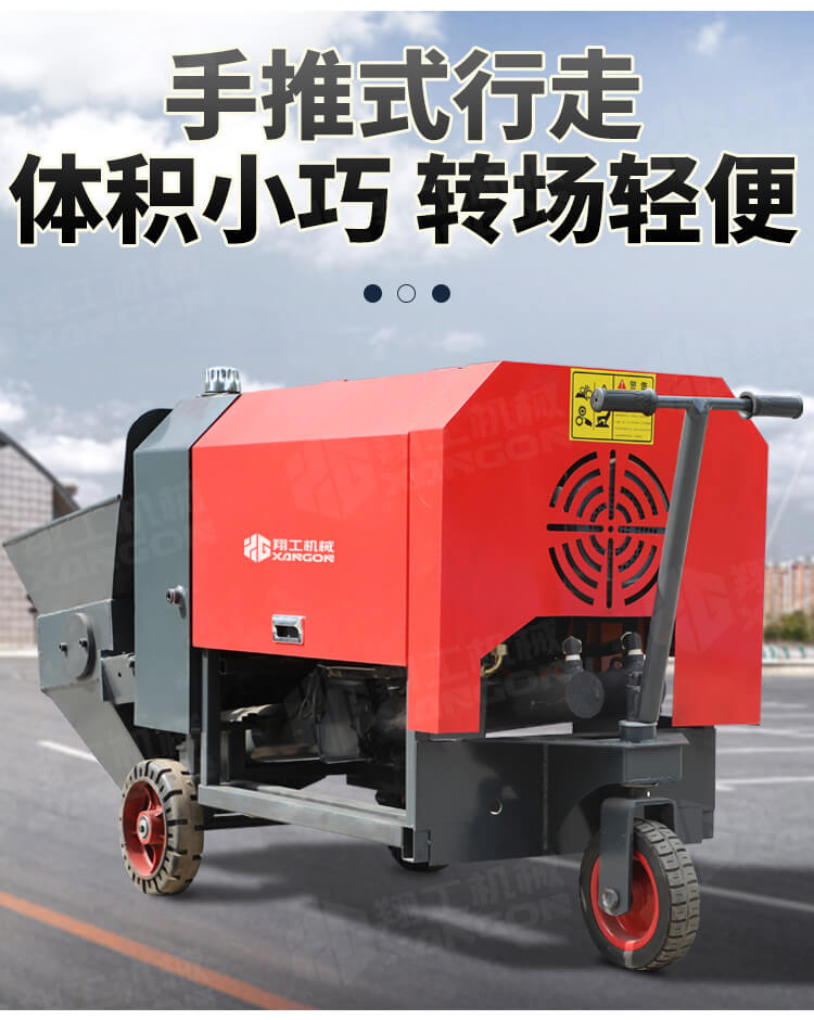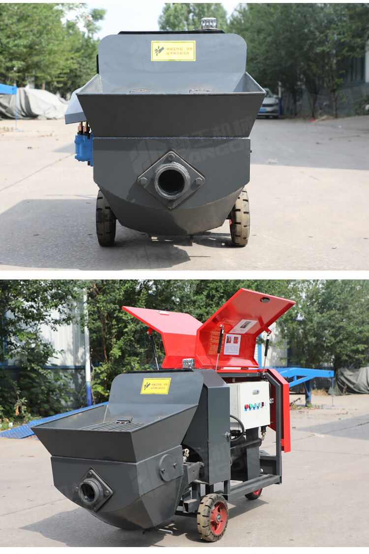本產(chǎn)品為手推式行走臥式造型輸送泵,料斗帶攪拌功能,可泵送機制砂;風(fēng)冷散熱,散熱效果好;集成芯片控制箱,多條備用線路獨立設(shè)計,不用擔(dān)心控制系統(tǒng)問題;操作部件采用24v 安全感應(yīng)電壓,安全可靠;S 彎采用兩個單向油缸,速度均勻。