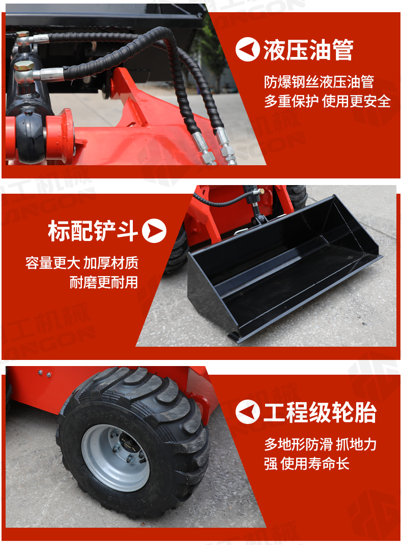 滑移裝載機液壓舉升,可以任意搭配輔具。