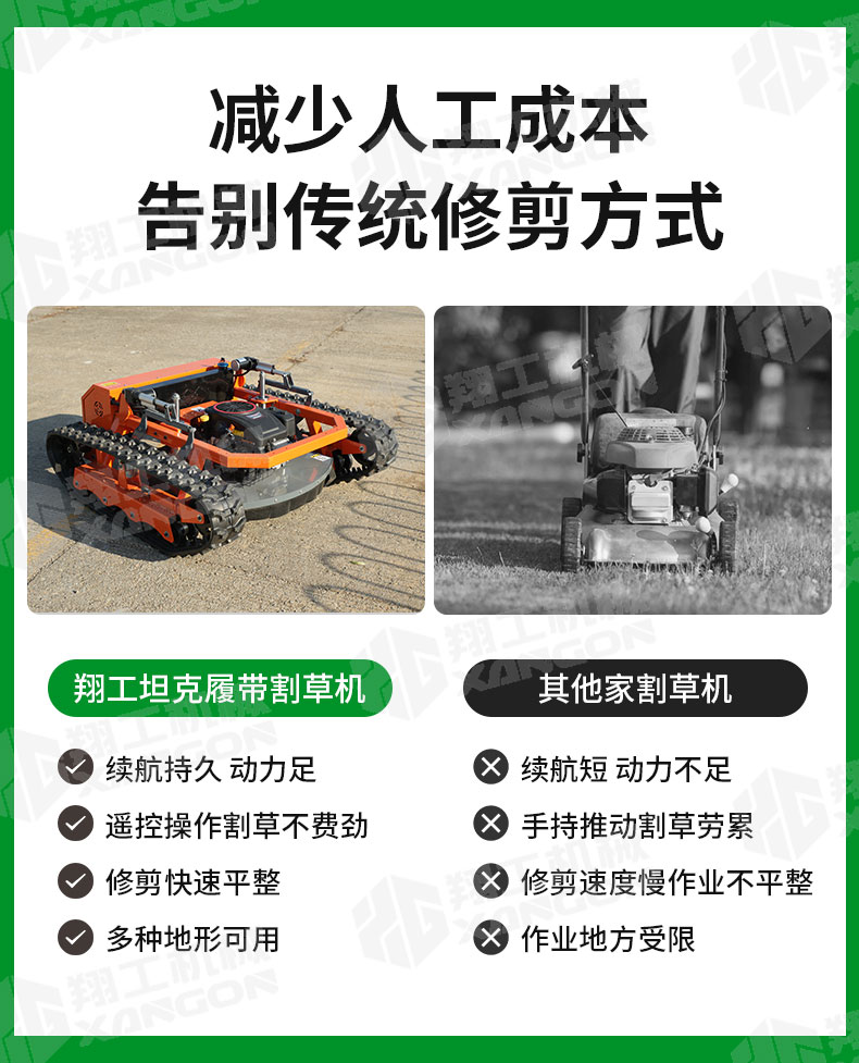 這是一款顛覆傳統(tǒng)的遙控坦克割草機。它采用堅固的履帶底盤,輕松征服陡坡、濕滑草地等復(fù)雜地形。無線遙控操作,讓您遠離烈日與噪音,在樹蔭下即可精準(zhǔn)完成修剪。動力強勁,效率遠超傳統(tǒng)手推式,是打理大型或不平整土地的理想智能工具。