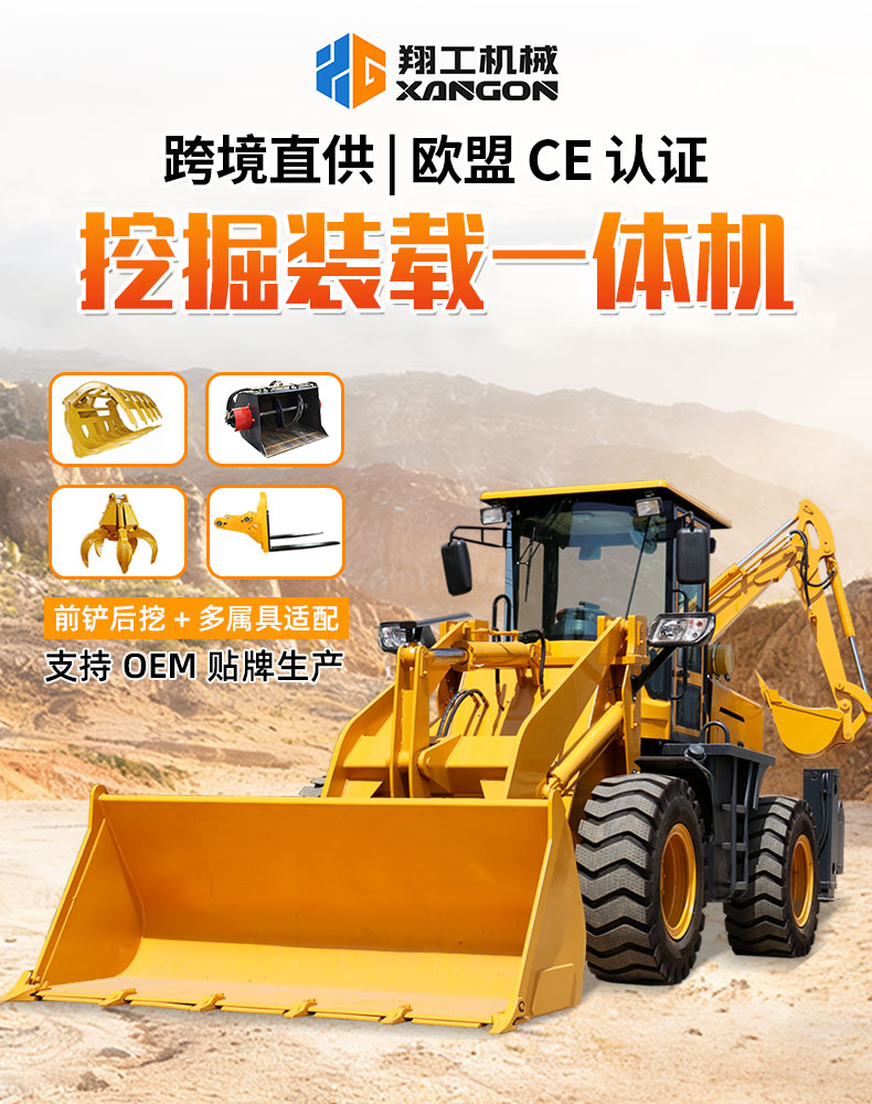 挖掘裝載機(jī),俗稱“兩頭忙”,是集成裝載和挖掘功能的工程機(jī)械。前方為裝載鏟斗,后方為挖掘裝置,可快速切換,實(shí)現(xiàn)鏟運(yùn)、挖掘、裝卸、平地等多種作業(yè)。結(jié)構(gòu)緊湊,機(jī)動(dòng)靈活,廣泛用于市政建設(shè)、農(nóng)田水利、管線敷設(shè)等中小型工程現(xiàn)場(chǎng),是高效多能的現(xiàn)代化施工設(shè)備。