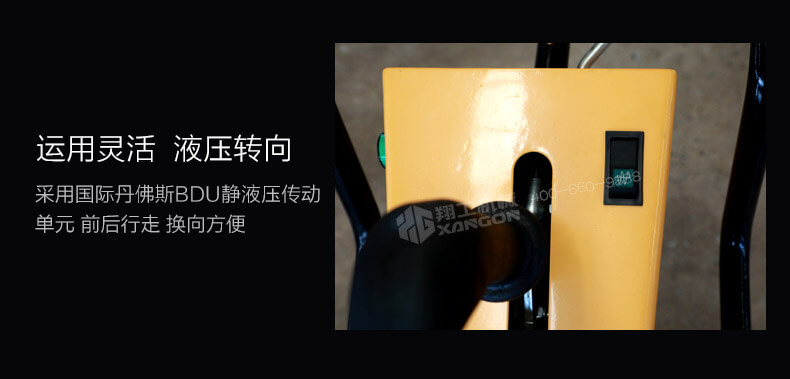 3. 采用國(guó)際丹佛斯BDU靜液壓傳動(dòng)單元,前后行走,換向方便;